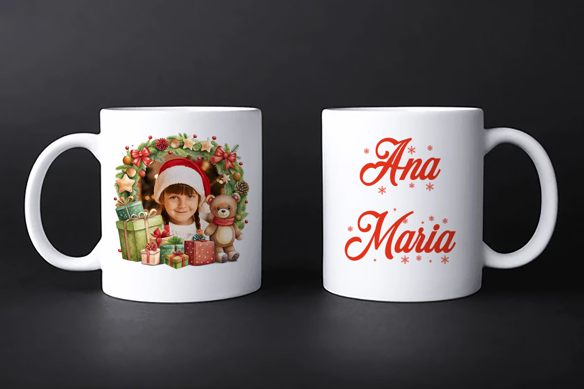 Creează o amintire adorabilă pentru cel mic: adaugă fotografia și numele copilului, iar noi transformăm cana într-un cadou festiv, colorat și rezistent. Perfectă pentru lapte, ceai, ciocolată caldă și dimineți magice de sărbători! 🎄✨