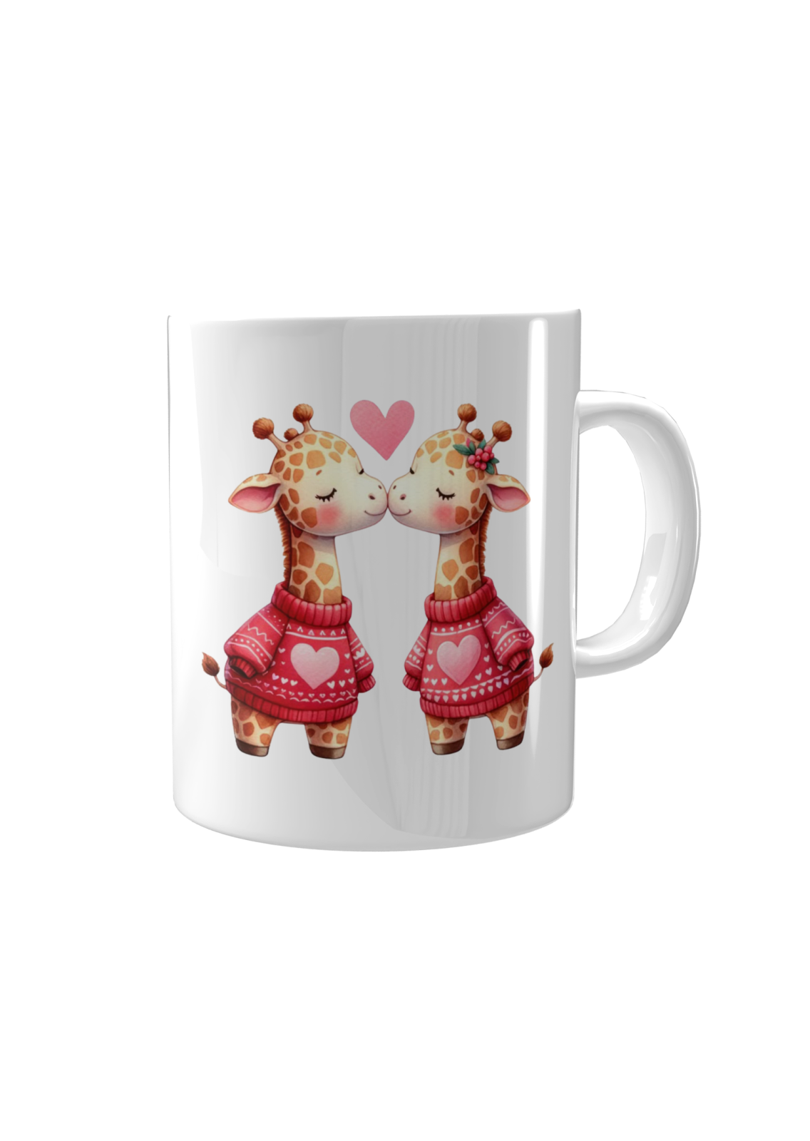 Cana cu imagine draguta cu un cuplu de girafe indragostite si un mesaj de iubire