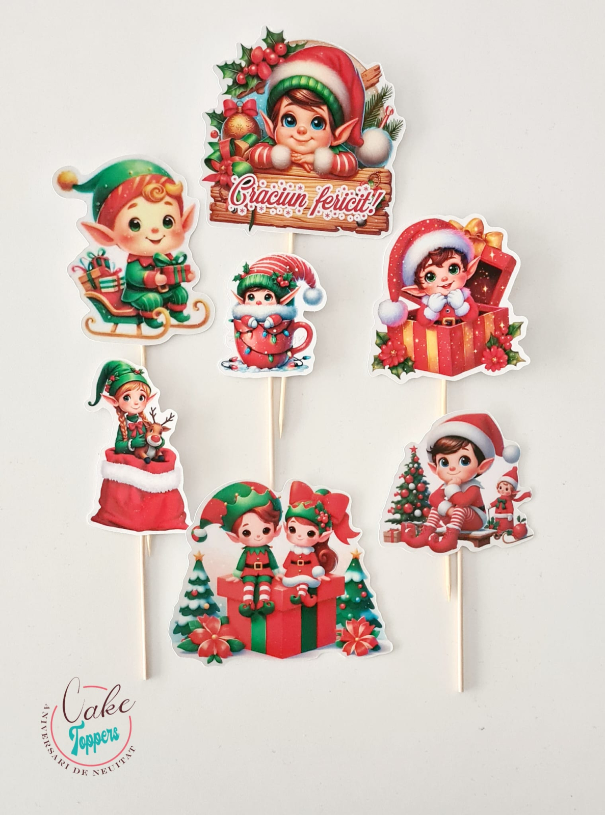 Set toppere craciun personalizat. Dimensiunile sunt aproximativ ntre 5 si 12 cm de bucata personj.Topperele sunt printate laser pe carton lucios de 300mg, spatele lor fiind alb. Vin montate pe bețe din lemn/bambus si decupate perfect mecanic.