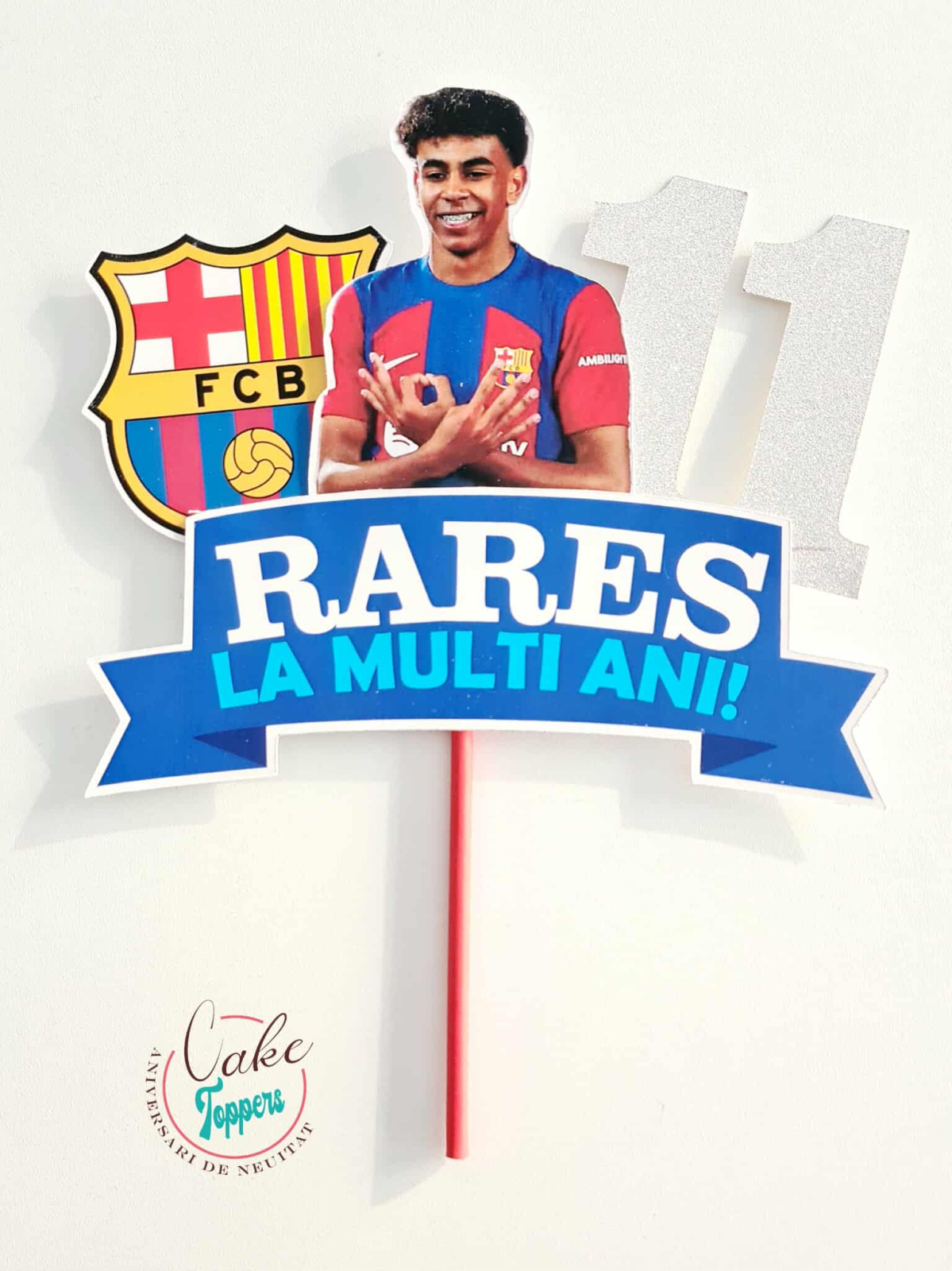 Acest topper Lamine Yamal 2D personalizat pentru tort este realizat în straturi și oferă un efect vizual deosebit.