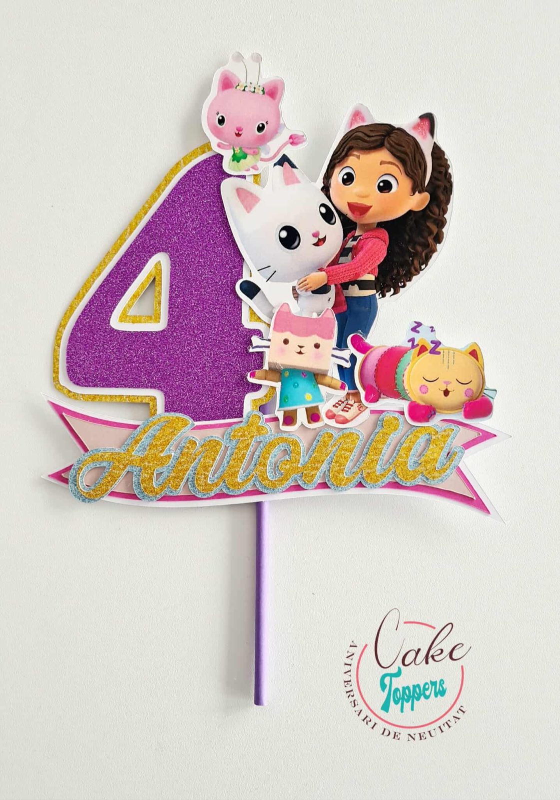 Acest topper Casa de papusi a lui Gaby 2D personalizat pentru tort este realizat în straturi și oferă un efect vizual deosebit.