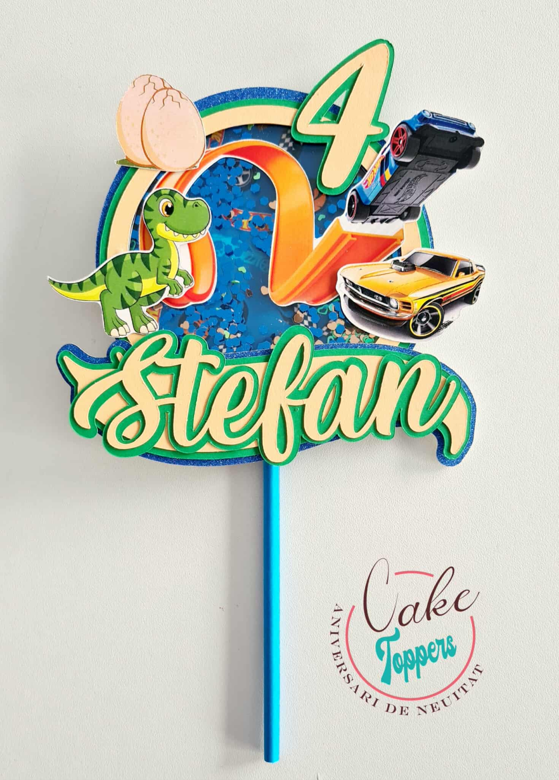 Acest topper Hot Wheels 3D personalizat pentru tort este realizat în straturi și oferă un efect vizual deosebit.