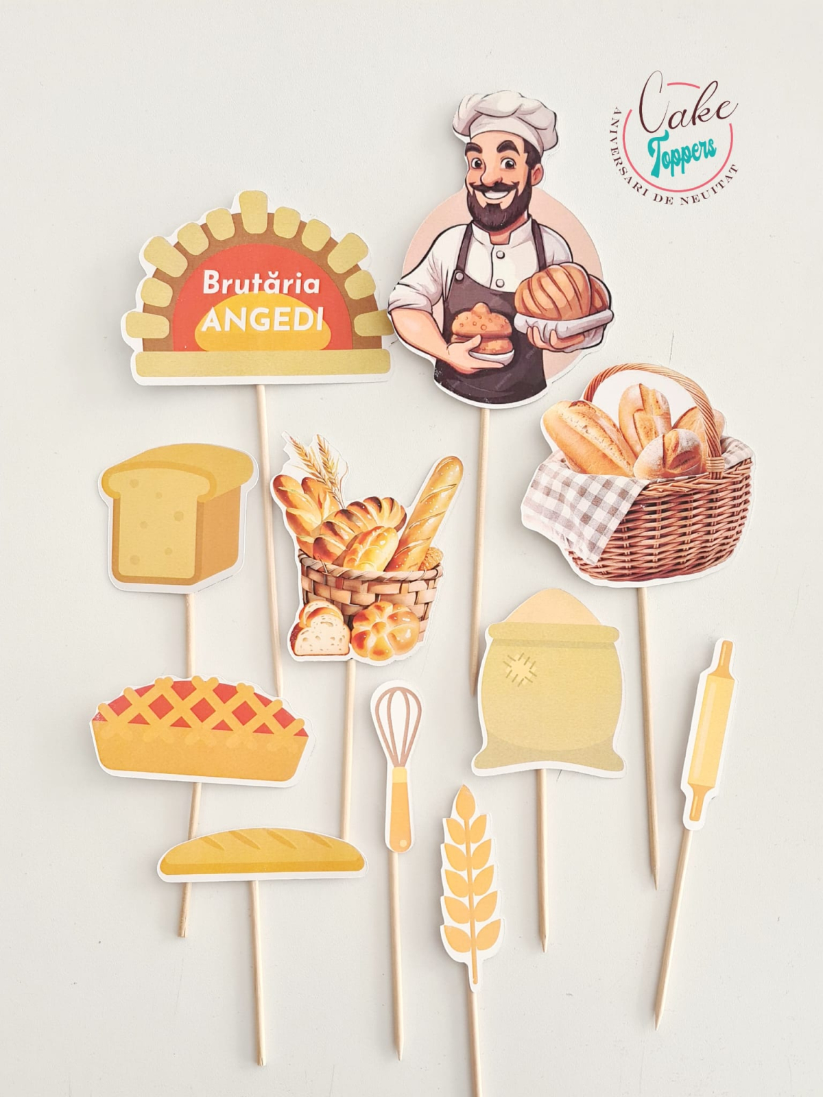 Set toppere Brutar cu mesaj. Dimensiunile sunt aproximativ ntre 5 si 12 cm de bucata personj. Topperele sunt printate laser pe carton lucios de 300mg, spatele lor fiind alb. Vin montate pe bețe din lemn/bambus si decupate perfect mecanic.